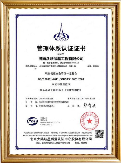 山東眾聯恒信工程集團有限公司成立于2010年4月20日,注冊資金2000萬元,固定資產8500萬元,公司主要從事地基基礎、勘察、設計等方面的專業承包,地基基礎專業施工資質壹級。